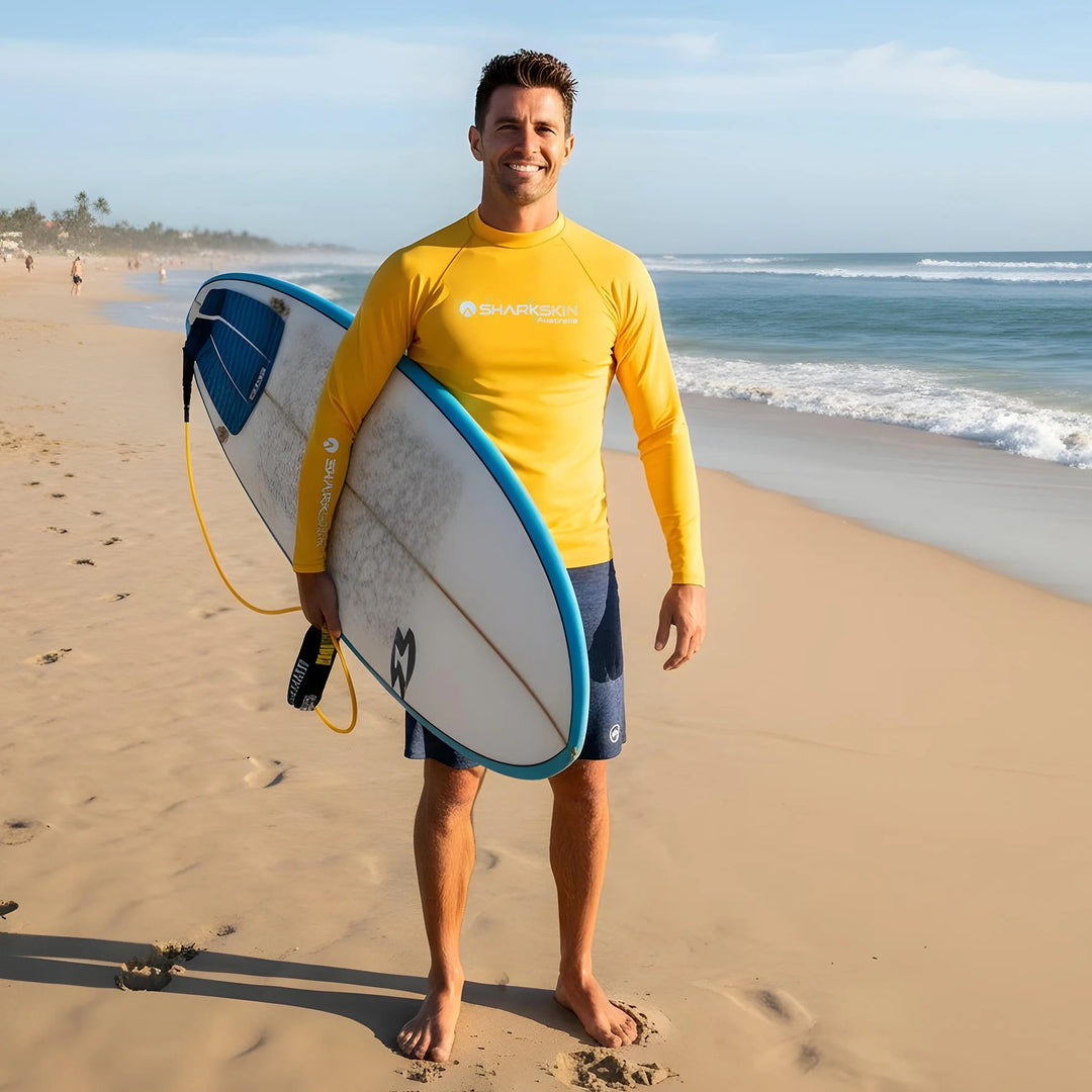 Dura Flex™ isn’t just another rashie — it’s a revolution in comfort, protection, and performance. While standard rashies quickly degrade in sun and chlorine, Dura Flex™ stays strong, soft, and safe — maintaining full UV protection long after cheaper fabrics have failed. Whether you’re surfing, swimming, paddling, or adventuring under the sun, Dura Flex™ will outlast, out-protect, and outshine anything else on the beach.